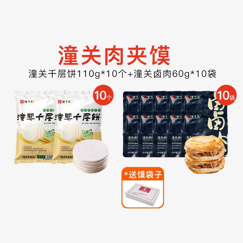 潼十三 潼关肉夹馍礼盒 潼关千层饼2袋 (5个/袋)+潼关卤肉(60g/袋*10袋)