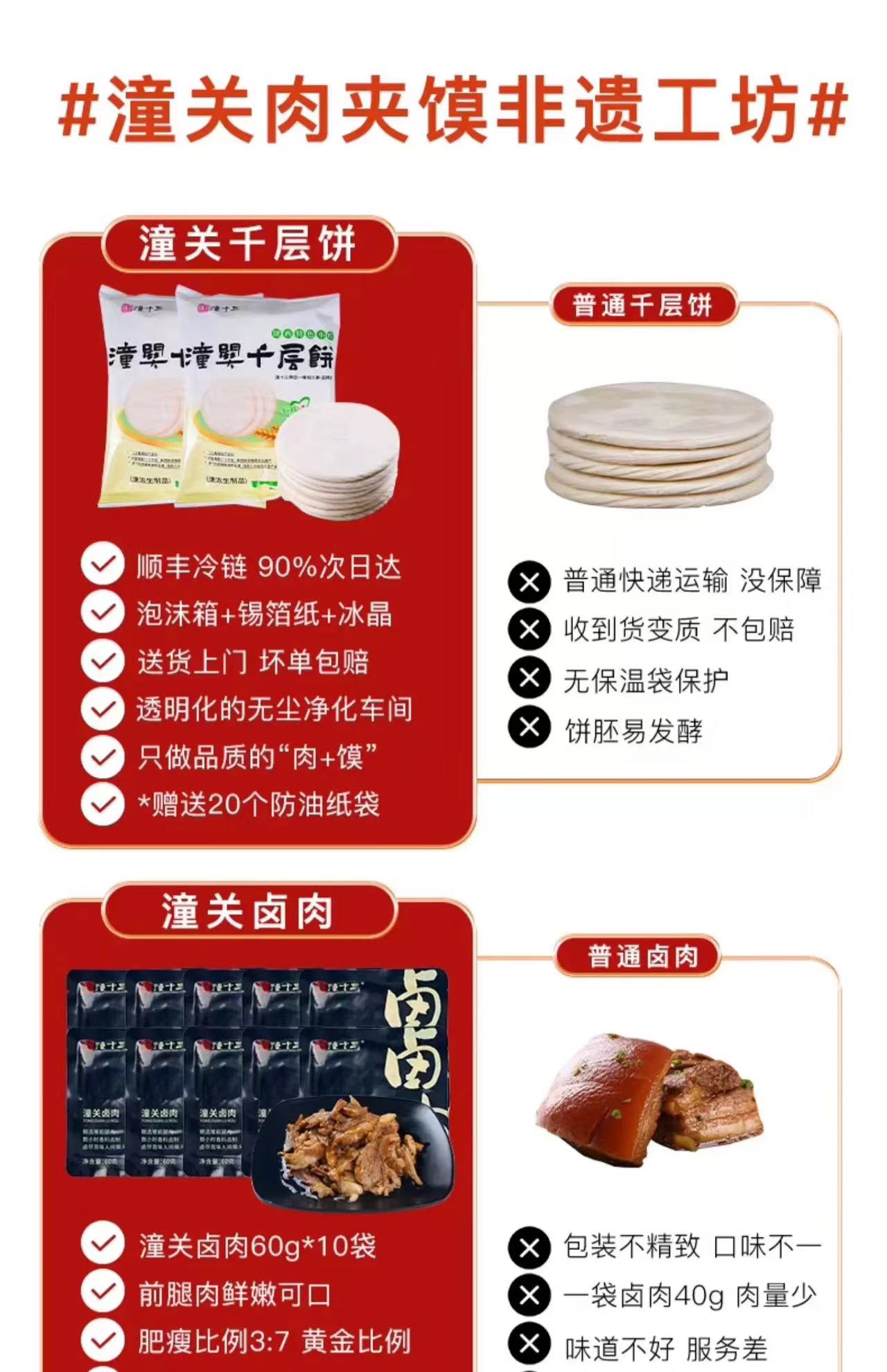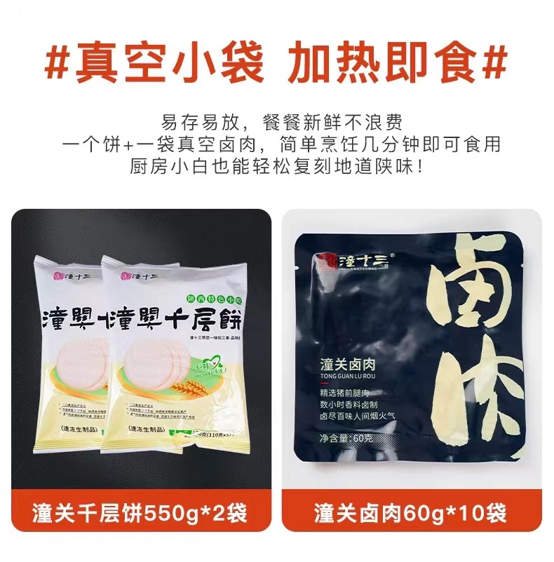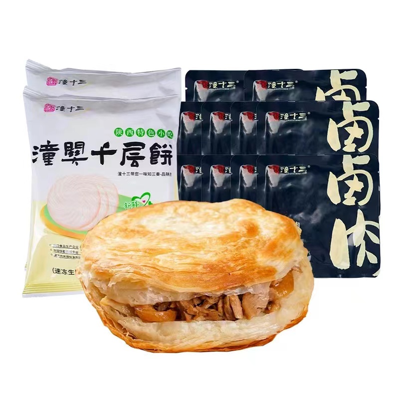 潼十三 潼关肉夹馍礼盒 潼关千层饼2袋 (5个/袋)+潼关卤肉(60g/袋*10袋)